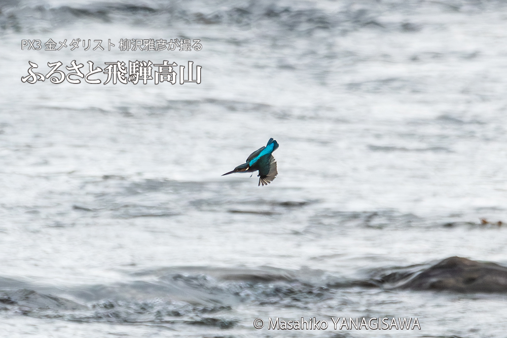 秋の飛騨高山(清流の宝石カワセミを追いかける小さな猛禽モズ) 撮影・柳沢雅彦