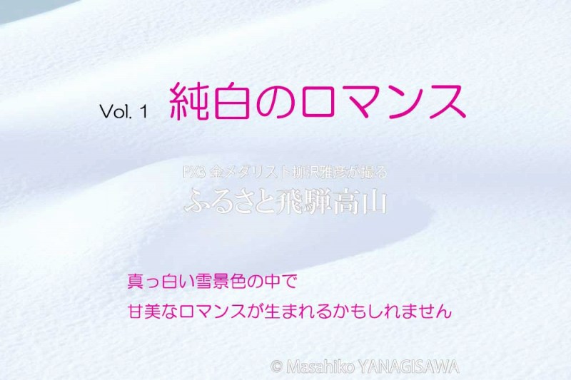 【 飛騨高山インターネット写真展開催のお知らせ 】 高山市制施行80周年の節目に、地元出身の写真家・柳沢雅彦は国際フォトコンテストPX3(Prix de la Photographie Paris)で金メダルを獲得いたしました。 それを記念して柳沢は、ふるさとへの愛と感謝の気持ちを込め国内外向けのインターネット写真展を1年間(2017年1月1日~12月31日)開催いたします。 ご存知のように高山市はミシュランガイドで京都、奈良とともに日本を代表する国際観光都市に選ばれました。 世界じゅうから観光客が訪れる飛騨高山の魅力を皆様どうぞお楽しみください。 In 2016, the 80th anniversary of the establishment of the municipality of Takayama City, Takayama-born photographer Masahiko Yanagisawa won the Gold Prize in Prix de la Photographie Paris (PX3). To celebrate the occasion, Yanagisawa will post photographs of Takayama City on the Internet for a year(from 1st of January 2017 to 31st of December) for viewing by people in Japan and around the world as a show of love and gratitude for his hometown. As you may know, Takayama City is named in the Michelin Guide as an international tourist destination like Kyoto and Nara. Hida Takayama welcomes international visitors and encourages them to discover the charms and attractions of the city. Vol.3 … People in snowy regions really look forward to the start of pink cherry blossom season.