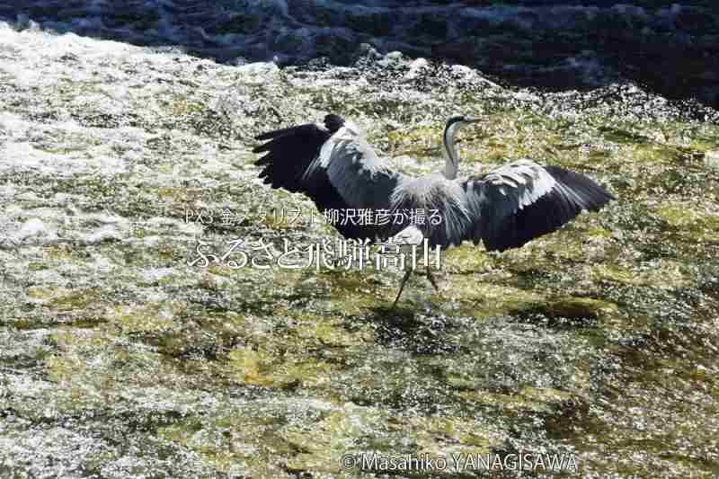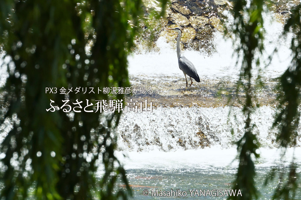 初夏の飛騨高山(遡上するアユを狙うアオサギ) 撮影・柳沢雅彦